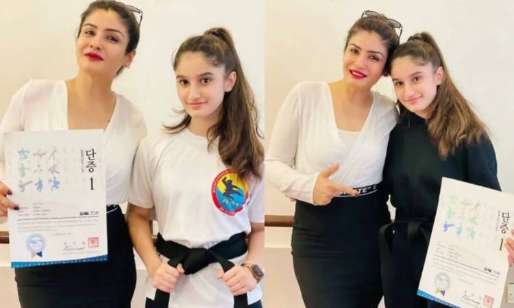 दरअसल रवीना की बेटी राशा थडानी अभी पढ़ाई कर रही हैं। हाल ही में उन्होंने मार्शल आर्ट फॉर्म, ताइक्वांडो में ब्लैक बेल्ट हासिल कर लिया है। अपनी बेटी की जीत की खुशी को ज़ाहिर करते हुए रवीना ने राशा की तस्वीर शेयर की जिसमें वह उसका सर्टिफिकेट दिखाती हुई नजर आ रही हैं। एक्ट्रेस ने कैप्शन में लिखा है, “मेरी बेटी ब्लैकबेल्ट। रशा थडानी तुम पर गर्व है।” रवीना और राशा दोनों ब्लैक एंड व्हाइट आउटफिट में दिख रही है।