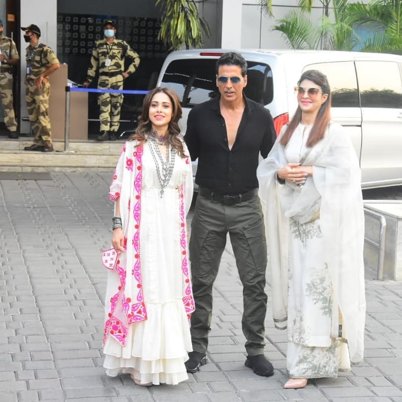 अक्षय कुमार फिल्म की दोनों अभिनेत्रियों जैकलीन फर्नांडिस और नुसरत भरुचा के साथ प्राइवेट जेट से अयोध्या के लिए रवाना हुए हैं। इन सभी ने कलीना सांताक्रूज़ के प्राइवेट एयरपोर्ट से अयोध्या के लिए उड़ान भरी है।