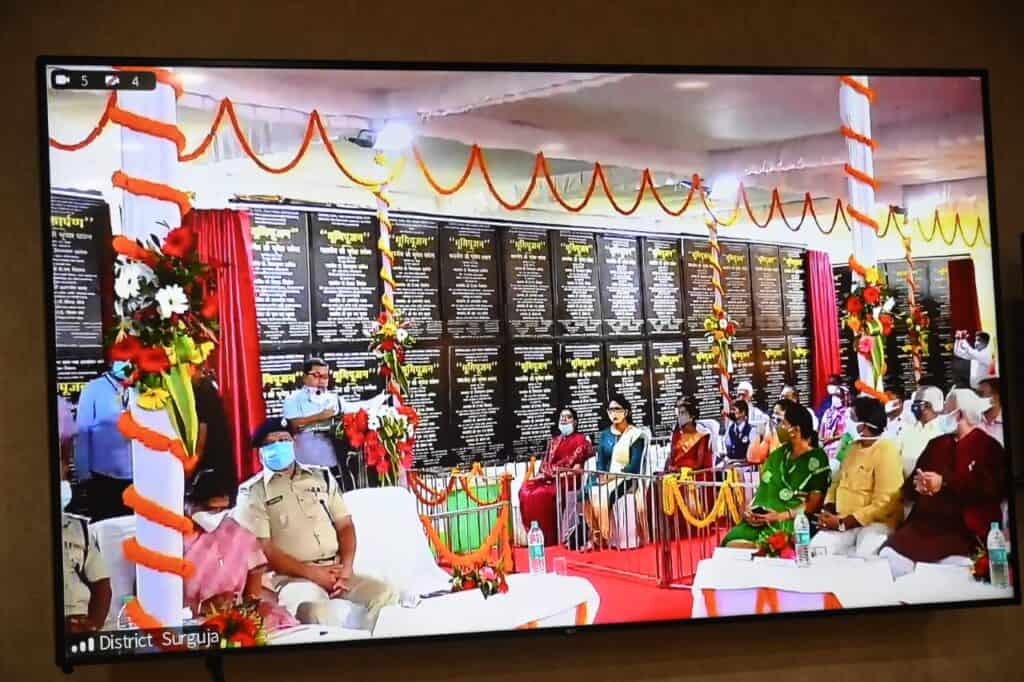 मुख्यमंत्री भूपेश बघेल ने आज यहां अपने निवास कार्यालय में आयोजित वर्चुअल कार्यक्रम में सरगुजा जिले में 247 करोड़ 91 लाख रूपए के 107 विभिन्न विकास कार्यों का वर्चुअल लोकार्पण एवं भूमिपूजन किया। इनमें 165 करोड़ 33 लाख रूपए की लागत के 82 कार्यों का भूमिपूजन और 82 करोड़ 58 लाख रूपए की लागत के 25 कार्यों का लोकार्पण शामिल है।