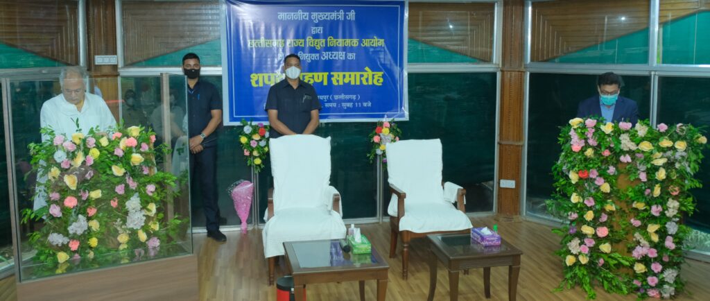 रायपुर, 03 जुलाई 2021। मुख्यमंत्री भूपेश बघेल ने आज सवेरे राजधानी रायपुर स्थित अपने निवास कार्यालय में आयोजित कार्यक्रम में छत्तीसगढ़ विद्युत नियामक आयोग के नवनियुक्त अध्यक्ष श्री हेमन्त वर्मा को पद और गोपनीयता तथा संविधान के प्रति निष्ठा की शपथ दिलाई। मुख्यमंत्री ने उन्हें शुभकामनाएं दीं। हेमन्त वर्मा छत्तीसगढ़ राज्य विद्युत नियामक आयोग के पांचवे अध्यक्ष बनें। विशेष सचिव ऊर्जा और छत्तीसगढ़ पॉवर कंपनियों के अध्यक्ष अंकित आनंद, छत्तीसगढ़ स्टेट पॉवर होलिं्डग कंपनी लिमिटेड की एम.डी.श्रीमती उज्जवला बघेल, छत्तीसगढ़ स्टेट पॉवर डिस्ट्रीब्यूशन कंपनी लिमिटेड के एम.डी. हर्ष गौतम, छत्तीसगढ़ राज्य पावर ट्रांसमिशन कंपनी के एम.डी. एस.डी. तेलंग, छत्तीसगढ़ स्टेट पॉवर जनरेशन कंपनी लिमिटेड के एम.डी. एन.के. बिजौरा, छत्तीसगढ़ विद्युत नियामक आयोग के सदस्य विनोद देशमुख, पी.के. देशमुख, प्रमोद गुप्ता, सचिव एम.एस. रत्नम, डायरेक्टर छत्तीसगढ़ विद्युत नियामक आयोग एस.पी. शुक्ला, नोडल अधिकारी मनोज वर्मा इस अवसर पर उपस्थित थे।