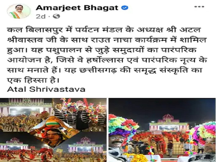 बिलासपुर में 27 नवंबर को राउत नाच महोत्सव का आयोजन किया गया था। इसमें संस्कृति मंत्री अमरजीत भगत, पर्यटन मंडल के अध्यक्ष अटल श्रीवास्तव शामिल हुए थे। इस आयोजन के बाद उन्होंने फेसबुक पोस्ट में लिखा था कि यह आयोजन पशुपालन से जुड़े समुदायों का पारंपरिक आयोजन है, जिसे वे हर्षोल्लास एवं पारंपरिक नृत्य के साथ मनाते हैं। इस पोस्ट पर यादव समाज ने आपत्ति जताते हुए मंत्री अमरजीत भगत से माफी मांगने की मांग की है।