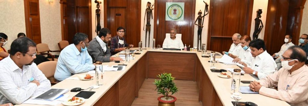 रायपुर 23 जुलाई 2020। मुख्यमंत्री भूपेश बघेल की अध्यक्षता में आज यहां उनके निवास कार्यालय में आयोजित बैठक में वन विभाग के कार्यों की समीक्षा की गई। बैठक में कृषि एवं जलसंसाधन मंत्री रवींद्र चौबे, वनमंत्री मोहम्मद अकबर, नगरीय प्रशासन मंत्री शिव कुमार डहरिया, स्कूल शिक्षा मंत्री डॉ. प्रेमसाय सिंह टेकाम, वीडियो कांफ्रेंसिंग के जरिए अम्बिकापुर से स्वास्थ्य मंत्री टी एस सिंहदेव शामिल हुए।