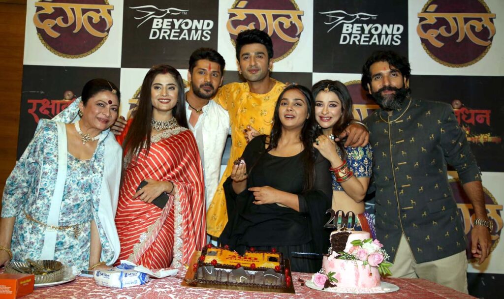 मुंबई 12 मार्च 2022। दंगल टीवी के पॉपुलर शो रक्षाबंधन रसाल अपने भाई की ढाल के 200 एपिसोड कंप्लीट हो गए हैं। इस खुशी के मौके पर मुंबई के एसजे स्टूडियो में सेट पर शानदार केक काटकर इस सफलता का जश्न मनाया गया जहां नायरा बनर्जी और निशांत मल्कानी सहित शो की पूरी कास्ट मौजूद रही। इस शो में प्रतिदिन नया ड्रामा और ट्विस्ट देखने को मिल रहा है इसलिए यह दर्शकों का फेवरेट सीरियल बन गया है। सबसे खास बात यह है कि दंगल टीवी नंबर 3 एंटरटेनमेंट चैनल बन गया है। शिवा का रोल कर रहे निशांत मल्कानी ने बताया कि मैंने कभी सोचा नहीं था कि 200 एपिसोड पूरे होने पर भी मैं ही शो का हीरो रहूंगा। दिल से काफी खुश हूं क्योंकि रक्षाबन्धन सिर्फ एक धारावाहिक नहीं है बल्कि दंगल टीवी का एक ब्रांड बन गया है। और दंगल टीवी पूरे देश मे नम्बर 3 चैनल बन गया है। स्टार और कलर्स के बाद दंगल टीवी इंडियन टेलीविजन की दुनिया में राज कर रहा है। इसलिए रक्षाबन्धन की पूरी टीम के लिए यह लम्हा बहुत ही गौरव वाला है। क्योंकि दंगल की प्रोग्रामिंग की शुरुआत रक्षाबंधन से हुई थी। इस शो को एक साल होने वाले हैं हमें पता ही नहीं चला। हमारे शो में अभिषेक शर्मा की एंट्री हुई है जो अर्जुन का रोल कर रहे हैं।