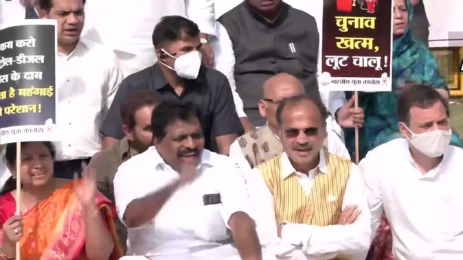 नई दिल्ली 31 मार्च 2022। पेट्रोल, डीजल और रसोई गैस के बढ़ते दामों और महंगाई के खिलाफ कांग्रेस पार्टी आज यानी गुरुवार को देशभर में प्रदर्शन कर रही है। इस प्रदर्शन को असरदार बनाने के लिए राहुल गांधी समेत कांग्रेस के कई वरिष्ठ नेता सड़क पर उतरे हैं। प्रदर्शन के दौरान सभी नेता ‘चुनाव खत्म लूट चालू’ के नारे लगाते नजर आए।