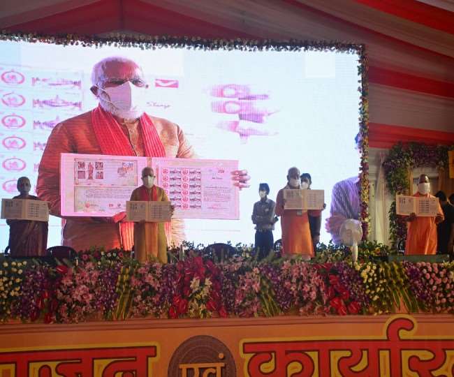 इस अवसर पर प्रधानमंत्री नरेंद्र मोदी ने एक डाक टिकट जारी किया गया है। इसकी कीमत पांच रुपये है और पांच लाख डाक टिकट छपेंगे। पीएम मोदी ने इसे जारी किया। इस पर राममंदिर की तस्वीर है।