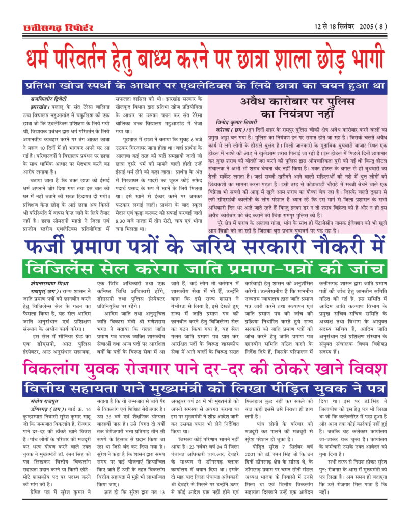 ‘‘छत्तीसगढ़ रिपोर्टर’’ ने 12 से 18 सितंबर 2005 के अंक में ‘‘समाज सेवा के नाम पर लूट मचा रखी है एनजीओ ने, 5 हजार करोड़ के विदेशी धन का मामला’’ के शीर्षक से समाचार प्रकाशित किया था। देश में गैर सरकारी संगठन एनजीओ को विदेशों से मिलने वाला धन तकरीबन 5 हजार करोड़ रुपए की विदेशी सहायता से सामाज सेवा करने वाली देश की सैकड़ों संस्थाओं का नाम पंजीकरण की उस कानूनी सूची में भी शामिल है, जिसे विदेशी अनुदान के नियमितीकरण के लिए बना ‘एफसीआरए’ कानून कहा जाता है। ‘‘छत्तीसगढ़ रिपोर्टर’’ को केन्द्रीय गृह मंत्रालय के सूत्रों से मिले आकड़ों के मुताबिक सैकड़ों संगठनों को विदेशी अनुदान सन 1999 -2000 के दौरान 3924.63 करोड़ रुपये, 2000-01 के दौरान 14598 करोड़ रुपये, 2001-2002 की अवधि में संगठनों को 15618 करोड़ रुपये, जबकि 2003-04 के दौरान संगठनों को लगभग 4870 करोड़ रुपये का विदेशी अनुदान मिला था। इसमें दिल्ली, आंध्रप्रदेश, तमिलनाडु, कर्नाटक राज्य के संस्थाओं को मिलने वाली अनुदान राशि सबसे अधिक थे। इसके अलावा छत्तीसगढ़ राज्य सहित अनेक राज्यों को औसतन 5-6 करोड़ रुपए प्रति संस्था के हिसाब से विदेशी अनुदान प्राप्त करने वाले ये एनजीओ आखिर इसका क्या करते हैं? छत्तीसगढ़ में लगभग 173 एनजीओ को मिलती है विदेशी धन की मदद। ‘‘छत्तीसगढ़ रिपोर्टर’’ के खुलासा के बाद छत्तीसगढ़ विधानसभा में सेवा के नाम पर सरकारी खजाने से राशि लूटने में लगे गैर सरकारी संगठनों (एनजीओ) के खिलाफ जमकर हंगामा हुआ। इसके बाद छत्तीसगढ़ राज्य सहित अन्य राज्य के सरकारों और केन्द्र सरकार ने सैकड़ों निजी एनजीओ की जांच के बाद उनकी पात्रता खत्म कर दी।