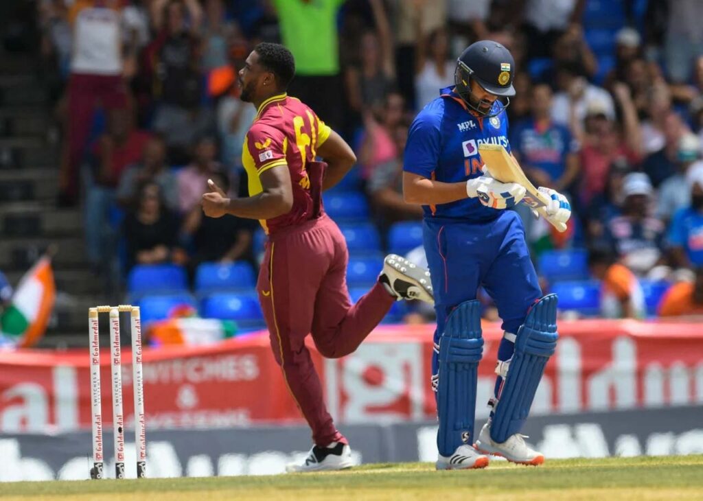 नई दिल्ली 02 अगस्त 2022। भारत और वेस्टइंडीज के बीच टी20 सीरीज का दूसरा मुकाबला वेस्टइंडीज ने पांच विकेट से जीत लिया। इस जीत के साथ ही कैरिबियाई टीम ने सीरीज में 1-1 की बराबरी कर ली है। इस मैच में वेस्टइंडीज के कप्तान निकोलस पूरन ने टॉस जीतकर पहले बल्लेबाजी का फैसला किया और ओबेड मैकॉय ने पहली ही गेंद में भारतीय कप्तान रोहित शर्मा को पवेलियन भेज दिया। यहीं से समझ आ गया था कि इस मैच में भारत को मुश्किल होने वाली है। हालांकि, टीम इंडिया अब ज्यादा आक्रामक होकर खेलती है और रोहित के आउट होने के बाद भी बल्लेबाज बड़े शॉट खेलते रहे।