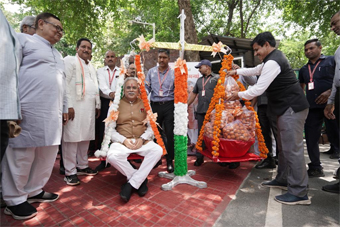 लड्डुओं से तौले गए मुख्यमंत्री, गजमाला पहनाया :
