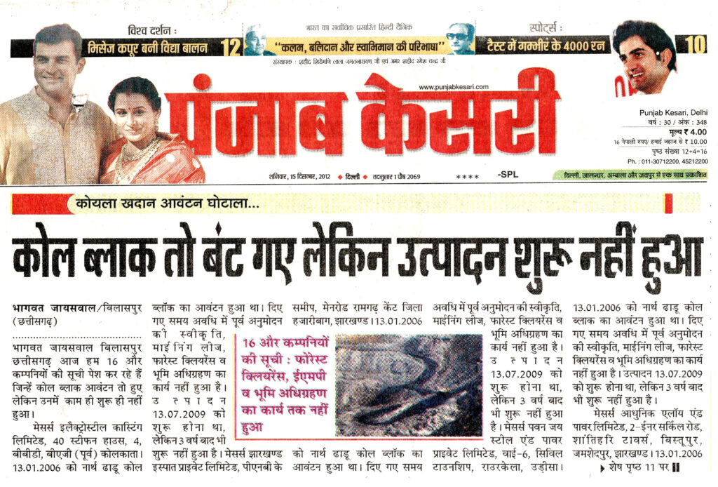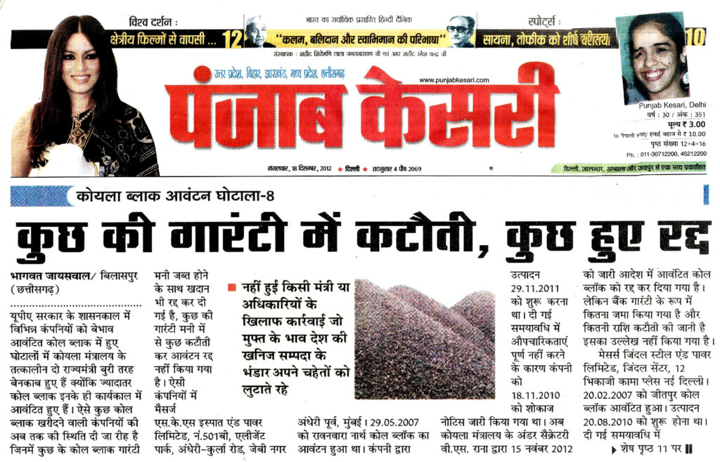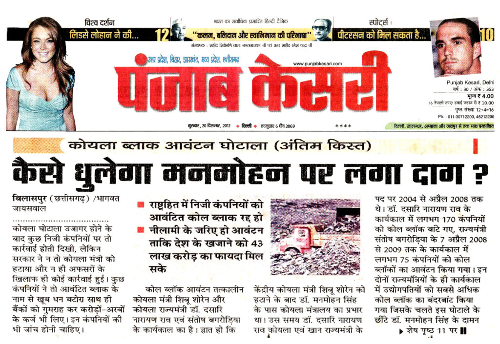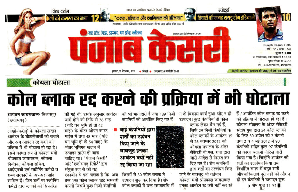 ‘‘छत्तीसगढ़ रिपोर्टर’’ के खुलासों को राष्ट्रीय अखबारों ने भी गंभीरता से लेते हुए अपने-अपने स्तर पर समाचार प्रकाशित करते हैं जिसमें प्रतिष्ठित राष्ट्रीय हिंदी दैनिक ‘‘पंजाब केसरी’’ दिल्ली के संपादक श्री अश्विनी कुमार ने ‘‘छत्तीसगढ़ रिपोर्टर’’ के खुलासों को अपने विशेष सम्पादकीय में स्थान देते हुए एक सप्ताह तक क्रमश: प्रकाशित किया था। उसके बाद ‘‘छत्तीसगढ़ रिपोर्टर’’ ने 26 नवम्बर से 2 दिसम्बर 2012 के अंक में ‘‘लाखों करोड़ के कोल ब्लॉक घोटालेबाजों को बचाने में लगी सरकार’’ 195 कोल ब्लॉक 289 कंपनियों को आवंटित, 54 कोल ब्लॉक के लिए 97 कंपनियों को नोटिस, ‘‘छत्तीसगढ़ रिपोर्टर’’ के पर्दाफाश से देश में मचा कोहराम के शीर्षक से तीसरा बड़ा खुलासा किया था। यह विशेष खोजी रिपोर्ट 8 पृष्ठों में थी उसे ‘‘पंजाब केसरी’’ ने अपने सभी संस्करणों के मुख्य पृष्ठों पर दिनांक 11 दिसम्बर 2012 से 20 दिसम्बर 2012 तक लगातार भागवत जायसवाल, बिलासपुर के नाम के साथ ‘‘छत्तीसगढ़ रिपोर्टर’’ का भी उल्लेख करते हुए 10 दिनों तक क्रमश: समाचार प्रकाशित किया था।