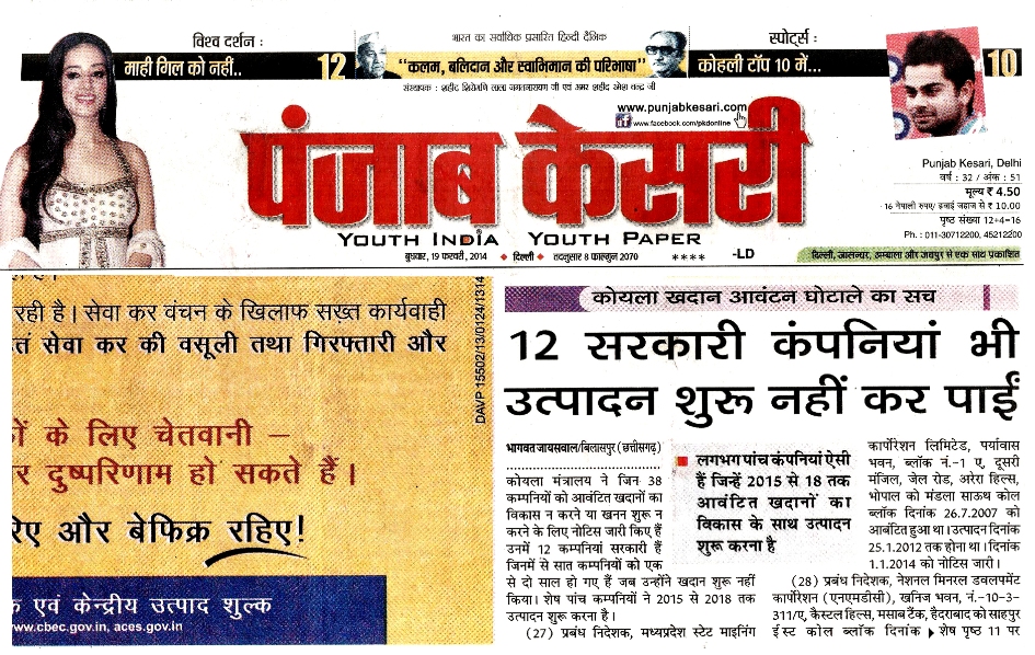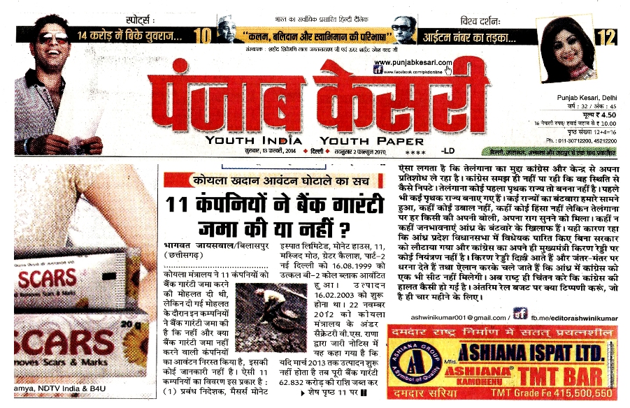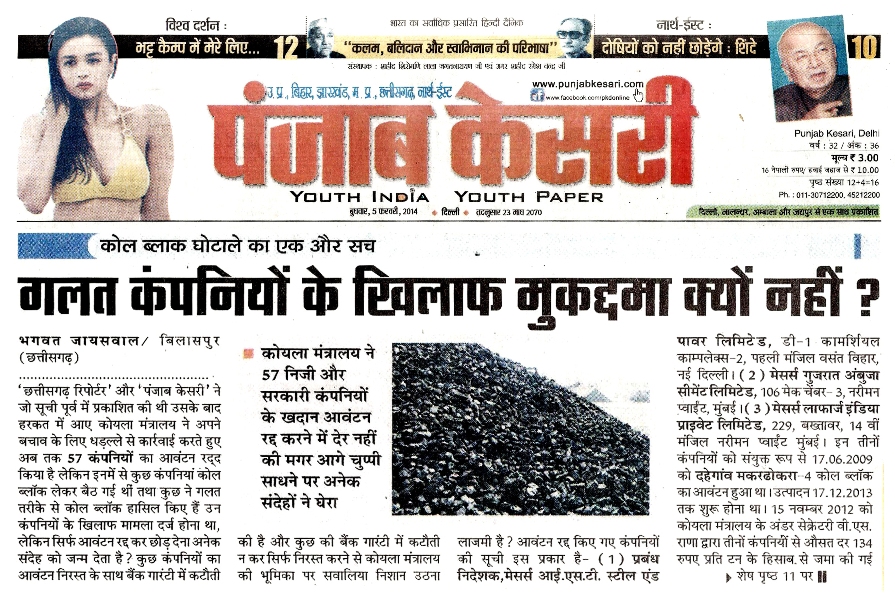 ‘‘छत्तीसगढ़ रिपोर्टर’’ के खुलासों का असर राष्ट्रीय अखबारों एवं न्यूज चैनलों पर भी होता है, क्योंकि ‘‘छत्तीसगढ़ रिपोर्टर’’ विशेष खोजी रिपोर्ट साक्ष्य तथ्य और पुख्ता प्रमाण के साथ प्रकाशित करता है। उसे राष्ट्रीय अखबार भी गंभीरता से लेते हैं और अपने-अपने स्तर पर समाचार प्रकाशित करते हैं। ‘‘छत्तीसगढ़ रिपोर्टर’’ ने 27 जनवरी से 2 फरवरी 2014 के अंक में ‘‘कोल ब्लॉक आवंटन घोटाले में दर्जनों जा सकते हैं जेल’’ ‘‘छत्तीसगढ़ रिपोर्टर’’ के लगातार खुलासे के बाद हरकत में आई सरकार, दबाव में बड़ी कार्रवाई की तैयारी, के शीर्षक से 14 पृष्ठों में समाचार प्रकाशित किया था। जिसमें कोयला मंत्रालय ने किन-किन कंपनियों पर क्या-क्या कार्रवाई की और किस कंपनियों को बचाने में लगे है आदि के साथ कुल 286 कंपनियों के विस्तृत रिपोर्ट 14 पृष्ठों में चाैथा बड़ा खुलासा किया था उसे दिल्ली के प्रतिष्ठित राष्ट्रीय हिन्दी दैनिक ‘‘पंजाब केसरी’ ने अपने सभी संस्करण के मुख्य पृष्ठ पर दिनांक 3 फरवरी 2014 से 26 फरवरी 2014 तक लगातार भागवत जायसवाल, बिलासपुर (छत्तीसगढ़) के नाम के साथ राष्ट्रीय हिन्दी साप्ताहिक ‘‘छत्तीसगढ़ रिपोर्टर’’ का भी उल्लेख करते हुए 23 दिन तक मुख्य पृष्ठ पर लगातार क्रमश: समाचार प्रकाशित किया था , जो राष्ट्रीय हिन्दी पत्रकारिता जगत के इतिहास में पहली बार हुआ हैे।