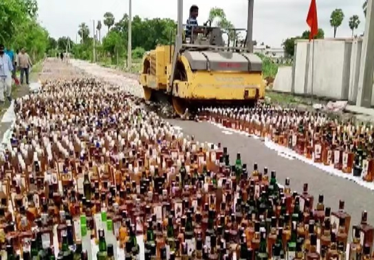 विजयवाड़ा 15 सितंबर 2022। आंध्र प्रदेश पुलिस ने बुधवार को तेलंगाना से अवैध रूप से ले जाई गई 2.43 लाख शराब की बोतलों पर बुलडोजर चलाकर नष्ट कर दिया। पुलिस के मुताबिक, बोतलों में 5.47 करोड़ रुपये की शराब थी। आंध्रप्रदेश के एनटीआर जिले में अधिकारियों ने जांच के दौरान इन अवैध बोतलों को जब्त किया था। विजयवाड़ा के पुलिस आयुक्त कांथी राणा टाटा ने कहा कि तेलंगाना से अवैध रूप से शराब की बोतलें लाई गई थीं। राज्य सरकार के आदेश पर, आंध्र प्रदेश पुलिस शहर के बाहरी इलाके में चेक पोस्ट पर औचक छापेमारी कर रही है। अन्य राज्यों से आंध्र प्रदेश में अवैध शराब परिवहन की रिपोर्टों के बाद यह कदम उठाया गया था। इस साल की शुरुआत में, विशेष प्रवर्तन ब्यूरो (एसईबी) ने कुरनूल से लगभग दो करोड़ रुपये की 66,000 बोतल शराब जब्त की थी।