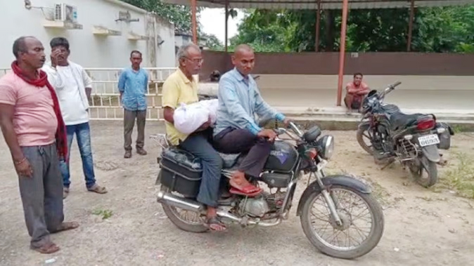 पोस्टमार्टम के बाद सरकारी एंबुलेंस नहीं मिली तो बाइक से ले गए घर
