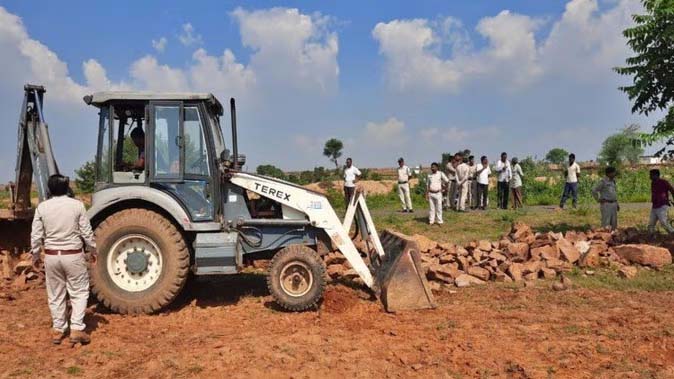 दमोह 15 अक्टूबर 2022। दमोह जिले के मडियादो थाना क्षेत्र के लखनपुरा गांव में युवक की हत्या के बाद पुलिस ने दो संदेही आरोपी रूपा वंजारा और भूरा बंजारा को पकड़ लिया और पूछताछ शुरू कर दी गई थी। वहीं संदेहियों को पकड़ने के 24 घंटे बाद ही एक संदेही का अवैध अतिक्रमण चिन्हित कर उस पर जेसीबी चलाई गई। जानकारी के अनुसार, आरोपी भूरा बंजारा ने लखनपुरा में ही वन विभाग के पीएफ 364 रमना बीट में 10 एकड़ वन भूमि को अतिक्रमित कर लिया था। चारो ओर से पत्थर की खखरी उठा ली थी। मौके पर पहुंचे हटा एसडीओपी वीरेंद्र बहादुर सिंह, एएसआई विनोद करोलिया, प्रधान आरक्षक राजेश मिश्रा और आरक्षक दीपेंद्र सहित वन परिक्षेत्र हटा से सहायक परिक्षेत्र अधिकारी जेपी दुबे, बीटगार्ड यशवंत पांडेय, अरमान और हरीश सहित अन्य वनकर्मियो ने जेसीबी से खखरी तुड़वा दिया। इस अतिक्रमण के अलावा अन्य अतिक्रमण को भी पुलिस और वन विभाग ने चिन्हित किया है।