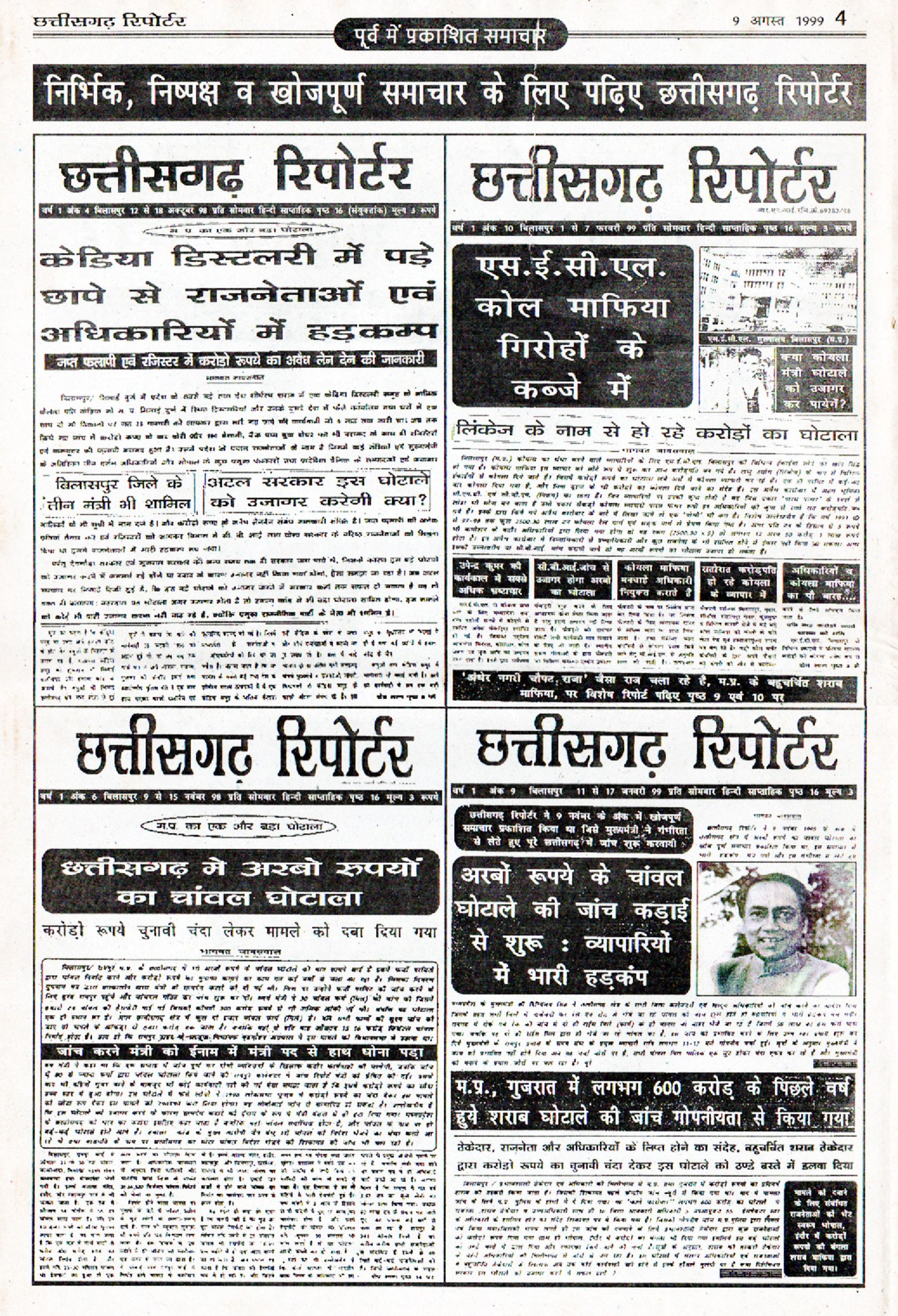 शेयर करेसाल बोरर के नाम पर किया गया षडय़ंत्र सफल भागवत जायसवाल, बिलासपुर (म.प्र.) ‘छत्तीसगढ़ रिपोर्टर’ ने 23 से 29 अगस्त 1999 के अंक में ‘4 अरब के साल वृक्ष काटे गये’ साल बोरर के नाम पर किया गया षडय़ंत्र सफल, के शीर्षक से उजागर किया था । जिसमें मध्यप्रदेश […]