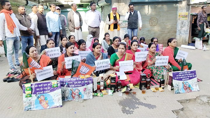 एमसीबी ( सरगुजा) 27 नवंबर 2022। शराब वैध हो या अवैध हो सुरूर तो दोनो में चढता है। फर्क यह है कि एक में सरकार को राजस्व मिलता है और दूसरे में सरकार को राजस्व की क्षति बताई जाती है। मनेन्द्रगढ़ के होटलों में बिक रही अवैध शराब के बंद करने को लेकर और छत्तीसगढ़ मे शराब बंदी का वादा करके सत्ता में बैठी कांग्रेस के खिलाफ बीते शनिवार को भरतपुर- सोनहत विधायक के कार्यालय के सामने बैठकर विरोध स्वरूप धरना प्रदर्शन कर भाजपा महिला मोर्चा की नेत्रियां मनेन्द्रगढ़ विधायक और भरतपुर-सोनहत विधायक के नामों के खिलाफ शराब की बोतलों को तथा चीखने को सामने रखकर दो घंटे तक जमकर नारे बाजी करती रहीं।