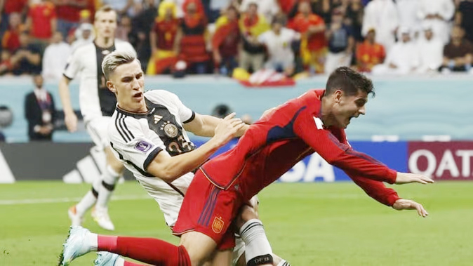 दोहा 28 नवंबर 2022। फीफा विश्व कप 2022 में स्पेन और जर्मनी का मैच 1-1 की बराबरी पर छूट गया। इसके साथ ही दोनों टीमों ने एक-एक अंक बांट लिया। स्पेन की टीम पहले ही फीफा विश्व कप में अंतिम 16 में जगह बना चुकी है। इस मैच में स्पेन के पास जर्मनी को हराकर अंक तालिका में अपनी स्थिति और मजबूत करने का मौका था, लेकिन स्पेन की टीम यह मौका चूक गई। इसके बाद टीम के मुख्य कोच लुइस एनरिक ने अपनी टीम के प्रदर्शन पर निराशा व्यक्त की। इस मैच में पहला गोल फ्रांस के लिए अलवारो मोराटा ने किया। उन्होंने मैच के 62वें मिनट में बेहतरीन गोल कर अपनी टीम को 1-0 की बढ़त दिलाई। हालांकि, फ्रांस की बढ़त थोड़ी देर बाद ही खत्म हो गई। जर्मनी के लिए निकलास फ्यूलकुर्ग ने मैच के 83वें मिनट में गोल कर अपनी टीम को बराबरी पर ला खड़ा किया। इसके बाद दोनों टीमें कोई गोल नहीं कर सकीं और मैच 1-1 से ड्रॉ पर खत्म हुआ।