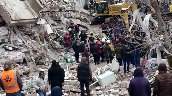 तुर्किये और सीरिया सहित चार देशों में सोमवार को भूकंप ने भारी तबाही मचाई थी। यहां बीते दिन तीन बार भूकंप के तेज झटके महसूस किए गए। भूकंप की वजह से कई इमारतें धराशायी हो गईं। रिक्टर पैमाने पर भूकंप की तीव्रता 7.8 मापी गई। सैकड़ों लोग अभी भी मलबे के नीचे फंसे हुए हैं और कई लापता हैं। मृतकों का आंकड़ा और बढ़ने की आशंका है। तुर्किये में सात दिन के राष्ट्रीय शोक की घोषणा की गई है।