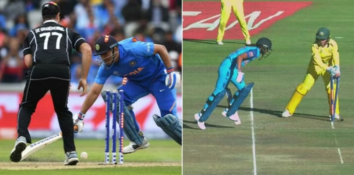 धोनी के रन आउट होने के चार साल बाद हरमनप्रीत भी कुछ उसी अंदाज में रन आउट हुईं। ऑस्ट्रेलिया के खिलाफ 2023 महिला टी20 विश्व कप के सेमीफाइनल मैच में भारत के सामने 173 रन का लक्ष्य था। इस मैच में भी भारत की शुरुआत खराब थी, लेकिन हरमनप्रीत ने अपने अर्धशतक के दम पर भारत की मैच में वापसी कराई। वह 52 रन बनाकर खेल रही थीं, जब दूसरा रन लेने के चक्कर में वह रन आउट हो गईं। हरमनप्रीत आसानी से दो रन पूरे कर सकती थीं और इसी वजह से वह दूसरा रन आराम से भाग रही थीं, जब थ्रो विकेटकीपर के पास आया तो उन्होंने क्रीज के पार अपना बल्ला ले जाने की कोशिश की। इसी समय उनकी किस्मत ने धोखा दिया और बल्ला जमीन में फंस गया। विकेटकीपर ने गिल्लियां बिखेर दीं और हरमन क्रीज से बाहर रह गईं। यहीं से भारत मैच हार गया। उनके बाद ऋचा घोष भी अगले ही ओवर में पवेलियन लौट गईं और टीम इंडिया की हार तय हो गई। भारत की हार के बाद फैंस को 2019 विश्व कप याद आ गया और सोशल मीडिया पर फैंस ने जमकर इस मामले पर ट्वीट किया।