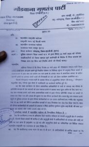 एमसीबी ( सरगुजा) — बीते शुक्रवार को गोंडवाना गणतंत्र पार्टी द्वारा एमसीबी कलेक्टर को ज्ञापन सौंपा गया । गोंडवाना गणतंत्र पार्टी एमसीबी के जिलाध्यक्ष केवल सिंह मरकाम ने मीडिया से कहा कि प्रदेश स्तरीय सभी जिला में शांतिपूर्ण तरिके से ज्ञापन सौंपने का कार्य किया गया। आज के कार्यक्रम का मुख्य एजेंडा था कि विगत तीन मार्च को जिला कवर्धा में हमारे पार्टी कार्यकर्ताओं के साथ सामाजिक झंडा को लेकर जो विवादित घटना हुई। उस घटना को लेकर हमारे पार्टी वाले पूर्व में उस झंडा को अवैध तरिके से जो उखाड फेंका गया था। उसकी शिकायत बार-बार उस क्षेत्र के कार्यकर्ता लोग प्रशासन से आवेदन किए थे। उस आवेदन को लेकर प्रशासन की कार्यवाही न देखते हुए एक समय सीमा के तहत इंतेजार किए। कार्यवाही न होने कारण बीस दिन के बाद उस जगह पर शांतिपूर्ण तरिके गए तो वहां कुछ असामाजिक तत्वों के द्वारा उनके ऊपर पत्थरबाजी किया गया। और सूचना मिलते ही पूरी टीम उनको बचाने के लिए गई तो पुलिस प्रशासन के द्वारा जबरदस्ती लाठी चार्ज किया गया। उसके विरोध में इनके विरूद्ध जांच और कार्यवाही के लिए शुक्रवार को शांतिपूर्ण तरिके से छत्तीसगढ़ के प्रत्येक जिला में कलेक्टर के माध्यम से महामहिम राष्ट्रपति के नाम से और महामहिम राज्यपाल के नाम से आज (शुक्रवार) को ज्ञापन सौंपने का कार्यक्रम किया गया है।