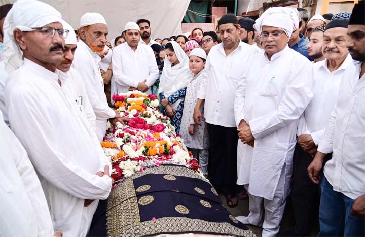 रायपुर, 15 मार्च 2023। मुख्यमंत्री भूपेश बघेल आज राजधानी रायपुर के मौदहापारा में वन मंत्री मोहम्मद अकबर के निवास पहुंचकर उनकी माता जी की अंतिम यात्रा में शामिल हुए। उन्होंने माताजी के पार्थिव शरीर पर पुष्प अर्पित कर उन्हें श्रद्धांजलि दी और जनाजे को कांधा दिया। मुख्यमंत्री ने श्री अकबर एवं उनके परिवारजनों से मिलकर ढाँढस बंधाया। उन्होंने ईश्वर से माताजी की आत्मा की शांति और परिवारजनों को इस दुःख को सहन करने की शक्ति प्रदान करने की प्रार्थना की।