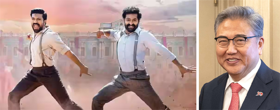 नई दिल्ली 08 अप्रैल 2023। दक्षिण कोरिया के विदेश मंत्री पार्क जिन ने शुक्रवार को भारतीय फिल्म ‘आरआरआर’ के ऑस्कर विजेता गीत ‘नाटू नाटू’ की प्रशंसा की और कहा कि इसने दुनिया को मंत्रमुग्ध कर दिया। जिन ने यहां विदेश मंत्री एस जयशंकर के साथ वार्ता के दौरान अपनी प्रारंभिक टिप्पणी में हिंदी में भी विस्तार से बात की। उन्होंने कहा कि भारत ने हाल ही में ऑस्कर जीत के साथ दुनिया को अपनी सांस्कृतिक शक्ति का प्रदर्शन किया है और मुझे कहना होगा कि ‘नाटू नाटू’ गीत और नृत्य ने दुनिया को मोहित कर लिया है। जिन ने अपने संबोधन में हिन्दी का भरपूर प्रयोग किया। उन्होंने कहा कि ‘‘मुझे भारत आकर और आपसे मिलकर बहुत खुशी हो रही है। आपके स्वागत के लिए बहुत बहुत धन्यवाद। ‘‘आजकल भारत में होना वास्तव में बहुत ही रोमांचक समय है।