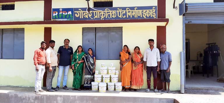 गांवो के गोठानों में संचालित रीपा में महिला समूहों द्वारा तैयार किया गया गोबर पेंट मल्टी नेशनल कंपनियों को टक्कर दे रहा है। पेंट निर्माण में अमूूमन मल्टी नेशनल कंपनियां ही काबिज थी लेकिन अब ग्रामीण महिलाएं भी इसमें मजबूती से कदम रख चुकी हैं। जिले में संचालित तीन रीपा गोठानों में समूह की महिलाओं द्वारा अब तक लगभग 1100 लीटर पेंट तैयार कर लिया गया है। गोबर पेंट से न केवल ग्रामीण अर्थव्यवस्था को मजबूती मिल रही है अपितु यह पर्यावरण संरक्षण की दृष्टि से भी फायदेमंद है।