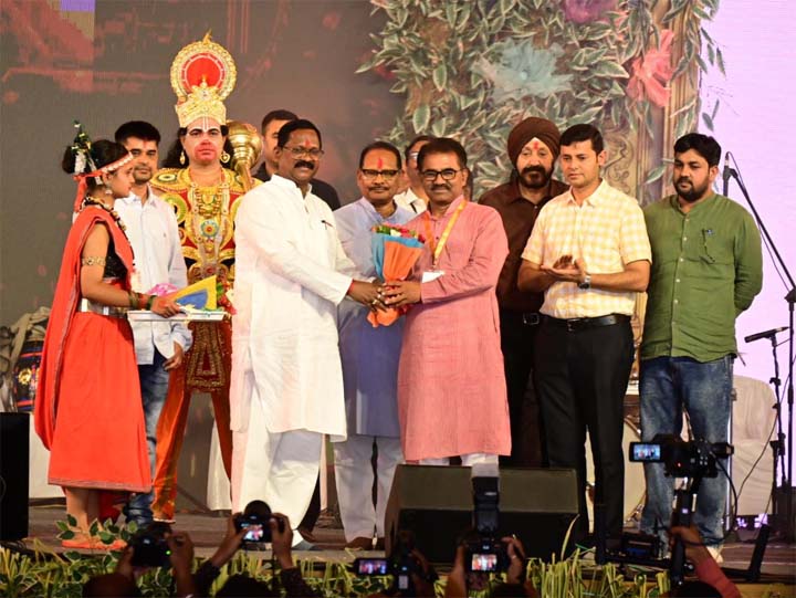 रायगढ़ 02 जून 2023। संस्कृति मंत्री अमरजीत भगत एवं स्कूल मंत्री डॉ. प्रेमसाय सिंह टेकाम ने राष्ट्रीय रामायण महोत्सव, रायगढ़ में दीप प्रज्ज्वलित कर आज के कार्यक्रम का शुभारंभ किया। इस अवसर पर लोकगायक दिलीप षडंगी ने अपनी टीम के साथ हनुमान चालीसा की प्रस्तुति दी। महोत्सव में उपस्थित सभी लोगों ने तालियों की थाप के साथ हनुमान चालीसा का पाठ किया।