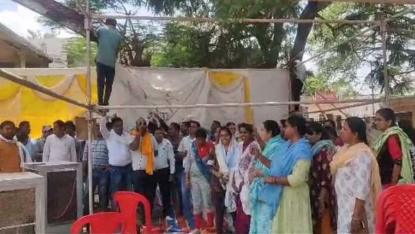 कबीरधाम 12 जून 2023। छत्तीसगढ़ में चल रही पटवारियों की हड़ताल को लेकर सरकार के बाद अब प्रशासन भी एक्शन में मूड में आ गया है। कबीरधाम में पटवारियों के धरना स्थल पर लगा पंडाल प्रशासन ने सोमवार के उखड़वा दिया। इसके अलावा उनके घरों के बाहर नोटिस चस्पा कर काम पर लौटने को कहा गया है। ऐसा नहीं करने पर कार्रवाई की चेतावनी दी गई है। पटवारी 15 मई से अपनी मांगों को लेकर हड़ताल पर हैं। इसके बाद सरकार ने 7 जून को एस्मा लगा दिया है। यह तीन महीने तक प्रभावी रहेगा। राज्य सरकार के आदेश के बाद भी जिले के 100 से भी ज्यादा पटवारियों की हड़ताल सोमवार को भी जारी रही। पटवारी बड़ी संख्या में सुबह से ही राजीव गांधी पार्क स्थित धरना स्थल पर एकत्र थे और प्रदर्शन कर रहे थे। इस बीच दोपहर करीब एक बजे प्रशासन की टीम पहुंची और पटवारियों के लगाए पंडाल को पार्क से हटवा दिया गया। इसके चलते पटवारियों ने प्रशासन और सरकार के खिलाफ जमकर नारेबाजी की। वहीं घरों के बाहर नोटिस लगाए जाने से भी पटवारी भड़के हुए हैं। उनमें नाराजगी है।