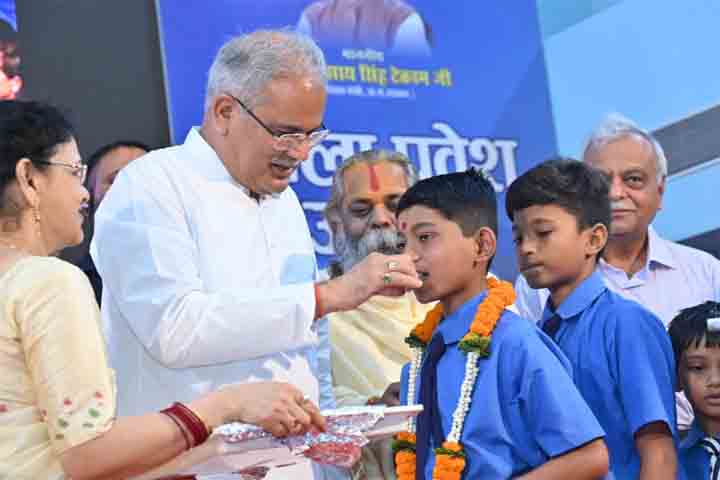 मुख्यमंत्री ने शाला प्रवेशोत्सव के मौके पर स्कूली बच्चों को तिलक लगाकर, माला पहनाकर तथा उन्हें मिठाई खिलाकर शाला प्रवेश कराया। इस मौके पर मुख्यमंत्री ने स्कूली बच्चों को गणवेश, पुस्तकें तथा स्कूल बैग का भी वितरण किया। मुख्यमंत्री ने विद्यार्थियों, शिक्षक-शिक्षिकाओं, प्राचार्यों और अभिभावकों को नये शिक्षा सत्र के शुभारंभ और शाला प्रवेशोत्सव की बधाई देते हुए कहा कि यही बच्चे हमारा भविष्य हैं और इन बच्चों को शिक्षा का उचित वातावरण देना हमारी जिम्मेदारी है ताकि इनका पढ़ाई में मन लगा रहे।