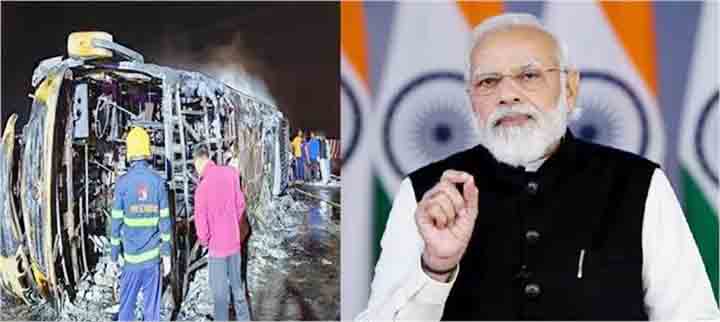 नई दिल्ली 01 जुलाई 2023। प्रधानमंत्री नरेंद्र मोदी ने शनिवार को समृद्धि महामार्ग एक्सप्रेसवे पर बुलढाणा में बस दुर्घटना में मारे गए लोगों के परिजनों के लिए 2 लाख रुपये की अनुग्रह राशि की घोषणा की। उन्होंने हादसे में घायल हुए लोगों को 50,000 रुपए देने की भी घोषणा की है. “महाराष्ट्र के बुलढाणा में विनाशकारी बस दुर्घटना से बहुत दुखी हूं। मेरी संवेदनाएं और प्रार्थनाएं उन लोगों के परिवारों के साथ हैं जिन्होंने अपनी जान गंवाई। घायल जल्द ठीक हो जाएं। स्थानीय प्रशासन प्रभावितों को हर संभव सहायता प्रदान कर रहा है। बता दें कि महाराष्ट्र के यवतमाल से पुणे जा रही एक बस में समृद्धि महामार्ग एक्सप्रेसवे पर बुलढाणा में आग लगने से 25 लोगों की मौत हो गई और 8 घायल हो गए। केंद्रीय गृह मंत्री अमित शाह ने भी दुर्घटना पर दुख व्यक्त किया और इसे “हृदयविदारक” बताया। “महाराष्ट्र के बुलढाणा जिले में सड़क दुर्घटना हृदय विदारक है। दुख की इस घड़ी में मेरी संवेदनाएं इस भीषण दुर्घटना में जान गंवाने वाले लोगों के परिवारों के साथ हैं। प्रशासन द्वारा घायलों को त्वरित उपचार उपलब्ध कराया जा रहा है। मैं ईश्वर से प्रार्थना करता हूं।”