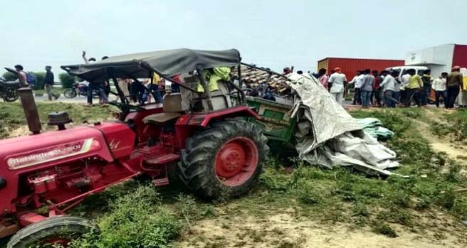मथुरा 03 जुलाई 2023। उत्तर प्रदेश के मथुरा जिले में सोमवार सुबह भीषण हादसा हुआ। गुरु पूर्णिमा पर्व पर गोवर्धन की परिक्रमा देकर लौट रहे श्रद्धालुओं से भरी ट्रैक्टर ट्रॉली अनियंत्रित होकर हाइवे किनारे गड्ढे में पलट गई। हादसे का कारण पीछे से तेज गति से आ रही स्विफ्ट कार का ट्रॉली में घुसना बताया जा रहा है। टक्कर इतनी भयंकर थी कि उसकी आवाज से हाईवे से गुजर रहे लोग सकते में आ गए। चीख-पुकार सुनकर आस-पास के लोगों ने मदद के लिए घटनास्थल तक की दौड़ लगा दी। मगर मदद मिलने से पहले ही कार सवार तीन लोगों समेत कुल चार लोगों की मौत हो चुकी थी। वहीं दो-तीन लोगों को गंभीर हालत में आगरा अस्पताल इलाज के लिए भेजा गया है। मौके पर पौरी शहजादपुर गांव के ग्रामीण व राहगीर एकत्रित होकर ट्रैक्टर ट्रॉली से घायलों को निकालने में जुट गए।
