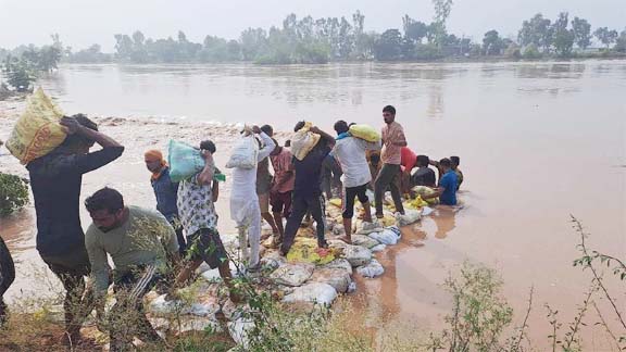 चंडीगढ़ 16 जुलाई 2023। पंजाब और हरियाणा में बाढ़ का पानी धीरे-धीरे उतरने लगा है लेकिन दोनों राज्यों के अब भी 518 गांव बाढ़ की चपेट में हैं। दोनों राज्यों में बाढ़ के चलते अब तक 57 लोगों की जान गई है। हरियाणा में 24 घंटे में 403 नये गांव और पंजाब में 115 गांवों में पानी भर गया है। हरियाणा के 1385 गांव बाढ़ से प्रभावित हैं। मौसम विभाग ने पंजाब और हरियाणा में चार दिन भारी बारिश की चेतावनी जारी की है। विभाग ने लोगों को सावधान रहने को कहा है। जलभराव के कारण शनिवार को दोनों राज्यों में आठ और लोगों की मौत हो गई। फिरोजपुर में गांव नौव बहराम शेर सिंह वाला की तरफ सतलुज पर बने पुल के ऊपर से बह रहे पानी में पांव फिसलने से एक युवक नदी में गिर गया। जब वह खुद को बचाने के लिए हाथ-पांव चला रहा था तो बाहर खड़े लोग उसका वीडियो बना रहे थे।