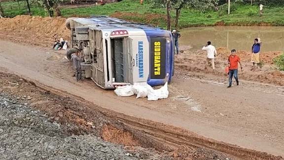 अंबिकापुर 29 जुलाई 2023। बनारस से कोरबा जा रही यात्री बस अंबिकापुर-बिलासपुर मुख्यमार्ग में शनिवार तड़के अनियंत्रित होकर बीच सड़क पर पलट गई। हादसे में बस में सवार 50 यात्रियों में करीब 19 यात्री घायल हो गए। हादसा एनएच 130 पर चल रहे पुल निर्माण के कारण बनाए गए बाइपास मार्ग पर हुआ। घायलों को उदयपुर सामुदायिक स्वास्थ्य केंद्र में भर्ती कराया गया है। जहां से दो को गंभीर हालत को देखते हुए अंबिकापुर मेडिकल कालेज अस्तपाल रेफर कर दिया गया। अन्य घायलों को प्राथमिक उपचार के बाद अन्य वाहनों से गंतव्य के लिए रवाना कर दिया गया।