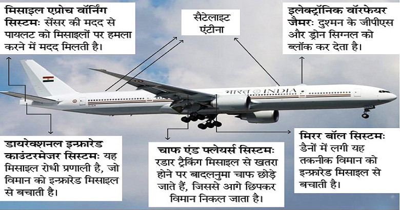 - एयरक्राफ्ट एडवांस डिफेंस सिस्टम से लैस है और मिसाइल अटैक को नाकाम करके पलटवार भी कर सकता है।