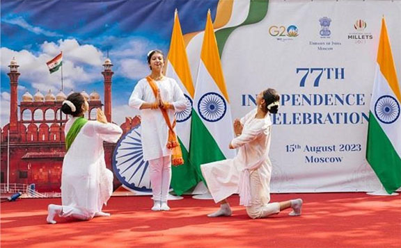 नई दिल्ली 16 अगस्त 2023। विश्व भर में भारतीयों ने मंगलवार को पूरे उत्साह से भारत का 77वां स्वतंत्रता दिवस मनाया। वे दूतावासों, राजनयिक मिशन में एकत्र हुए, जहां उन्होंने एक-दूसरे को शुभकामनाएं दीं तथा राष्ट्रगान और देशभक्ति गीत गाये। वाशिंगटन में, बाइडन प्रशासन भारत के स्वतंत्रता दिवस समारोह में भारतीय-अमेरिकियों के साथ शामिल हुआ। अमेरिकी विदेश मंत्री एंटनी ब्लिंकन ने कहा कि दोनों देशों के बीच द्विपक्षीय संबंध पहले की तुलना में अधिक प्रगाढ़ हुआ है। बीजिंग में प्रवासी भारतीयों और भारतीय दूतावास के अधिकारियों ने स्वतंत्रता दिवस मनाया। दूतावास ने सोशल मीडिया साइट ‘एक्स’ (पूर्व में ट्विटर) पर कहा कि भारत की चार महिला गुमनाम नायिकाओं के बलिदान को प्रदर्शित करने वाले एक नाटक का बच्चों के एक दल ने मंचन किया। जी20 की भारत की अध्यक्षता पर एक वीडियो भी प्रदर्शित की गई। शंघाई में भारत के महावाणिज्य दूत एन नंदकुमार ने पूर्वी चीन के महानगरों में भारत के महावाणिज्य दूतावास में तिरंगा फहराया और उन्होंने राष्ट्रपति द्रौपदी मुर्मू का राष्ट्र के नाम संबोधन पढ़ा। शंघाई स्थित भारतीय महावाणिज्य दूतावास ने ‘एक्स’ पर एक पोस्ट में कहा, ‘‘भारत का 77वां स्वतंत्रता दिवस शंघाई में देशभक्ति के जज्बे और रंगारंग सांस्कृतिक कार्यक्रम के साथ मनाया गया।