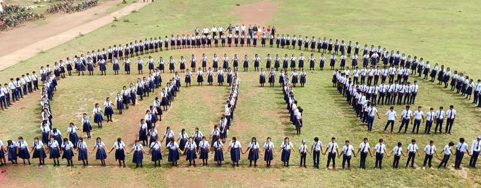 स्कूली बच्चों ने मानव श्रृंखला बनाकर किया जागरूक