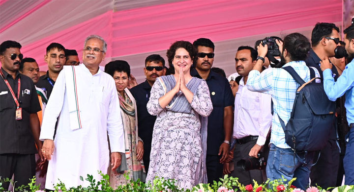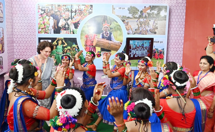 सुआ नर्तकों के साथ प्रियंका गांधी ने किया नृत्य