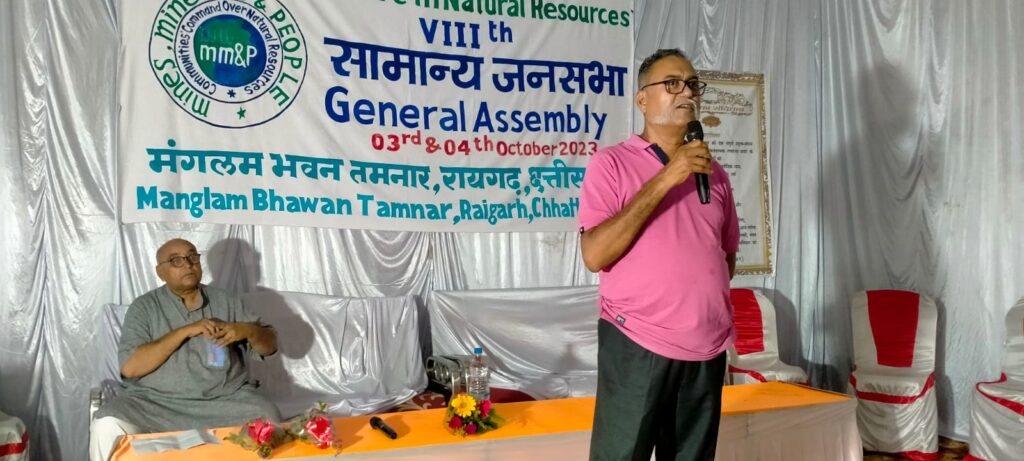रायगढ़ 03 अक्टूबर 2023। माइंस मिनरल एंड पीपल (एमएमएंडपी) की 8वीं महासभा मंगलवार को शुरू हुई। एमएमएंडपी के अध्यक्ष रेब्बाप्रगदा रवि, सचिव अशोक श्रीमाली, राजेश त्रिपाठी और समिति के अन्य सदस्यों ने ‘प्राकृतिक संसाधनों में सामुदायिक हिस्सेदारी’ के नारे के साथ बैठक की शुरुआत की। सबसे पहले उन्होंने राष्ट्रपिता महात्मा गांधी के चित्र पर पुष्पांजलि अर्पित की। समिति सचिव अशोक श्रीमाली की अध्यक्षता में तमनेर मंगलम भवन में आयोजित दो दिवसीय बैठक में अध्यक्ष रेब्बाप्रगदा रवि ने यह बात कही. अनुसूची क्षेत्र में स्थानीय संसाधनों को मूल निवासियों के साथ साझा किया जाना चाहिए। उन्होंने कहा कि स्थानीय संसाधनों के उपयोग में ग्राम सभा की बहुत बड़ी भूमिका है. उन्होंने कहा कि पेसा कानून ने ग्राम सभा को कई अधिकार दिये हैं. उन्होंने कहा कि योजनाओं को डिजाइन करने, निगरानी करने, लागू करने और सोशल ऑडिट कराने जैसे काम करने की जरूरत है. सचिव अशोक श्रीमाली एमएमएंडपी ने चार वर्षों (2019-2023) के लिए आदिवासियों को प्रदान की गई सेवाओं के बारे में बताया।