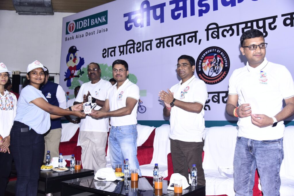 बिलासपुर, 22 अक्टूबर 2023। लोकतंत्र के महापर्व के लिए मतदाताओं को जागरूक करने आज शहर में विशाल स्वीप साइकिल रैली आयोजित की गयी। कलेक्टर एवं जिला निर्वाचन अधिकारी अवनीश शरण और पुलिस अधीक्षक श्री संतोष कुमार सिंह ने हरी झंडी दिखाकर साइकिल रैली का शुभारंभ किया। उन्होंने स्वयं साइकिल चलाकर रैली का नेतृत्व किया और युवाओं का हौसला बढ़ाया। यह रैली अरपा रिवर व्यू से शुरू होकर सिम्स चौक लखीराम ऑडिअटोरियम में खत्म हुई। सुबह के खुशनुमा माहौल में हजारों लोगों ने साइकिल चलाकर मतदाता जागरूकता का संदेश दिया। इस रैली में नगर निगम आयुक्त कुणाल दुदावत, डीआईजी एस.के.ठाकुर, जिला पंचायत सीईओ एवं स्वीप के नोडल अधिकारी अजय अग्रवाल, आईडीबीआई बैंक के डीजीएम अमिताभ बाजपेयी, अधिकारी-कर्मचारी, पुलिस, होमगार्ड, नगर सेना के जवान, राइडिंग कम्यूनिटी बिलासपुर के सदस्य, पायल सवेरा फाउंडेशन, विभिन्न संगठनों के पदाधिकारी सहित एनएसएस, एनसीसी, रेडक्रास, कैडेटस, विद्यार्थियों, युवा मतदाता, सहित अन्य लोगों नेे भी भाग लेकर मतदाता जागरूकता संदेश दिया। मतदाता जागरूकता का संदेश देने रंग-बिरंगे गुब्बारे भी रिवर व्यू में छोड़े गए।