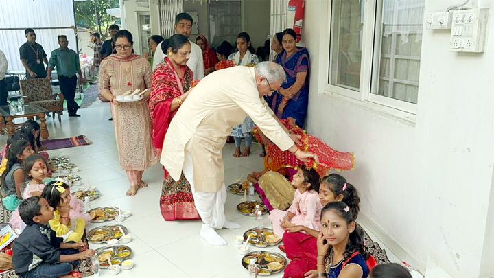 दुर्ग 23 अक्टूबर 2023। भिलाई निवास में सीएम भूपेश बघेल ने सपरिवार कन्या पूजन किया। साथ ही सीएम ने समस्त प्रदेशवासियों को मां भगवती के नौवें स्वरूप सिद्धिदात्री एवं महानवमी के पावन पर्व की हार्दिक बधाई एवं शुभकामनाएं दी। मान्यतों के अनुसार कन्या पूजन से मां बेहद प्रसन्न होकर भक्तों की सभी मनोकामनााओं को कर देती हैं. इतना ही नहीं देवी पुराण के अनुसार मां को हवन और दान से अधिक प्रसन्नता कन्या भोज से मिलती है. कुमारी कन्याओं को जो भोजन कराया जाता हैं, वो मां स्वयं भी ग्रहण करती हैं. इसलिए कुमारी कन्याओं का सच्चे मन से पूजन करना चाहिए और कुमारी कन्याओं को भोजन कराना चाहिए।