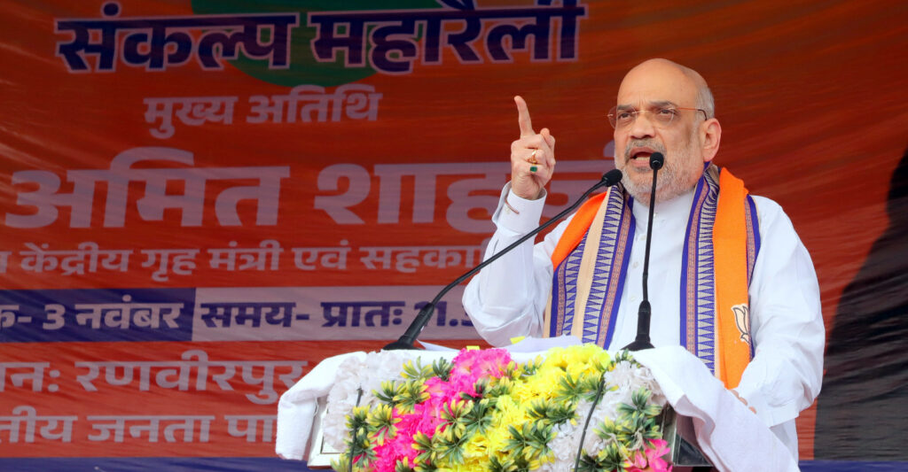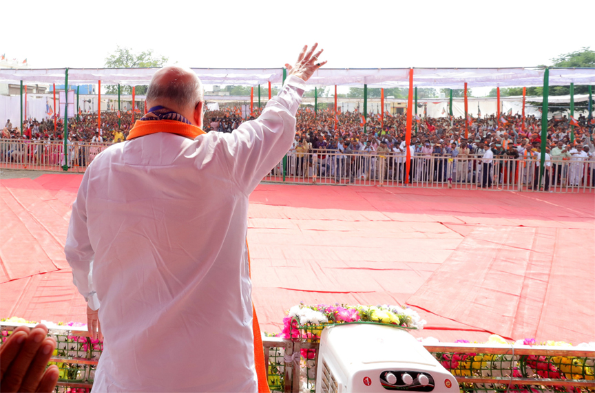 दुर्ग 04 नवंबर 2023। केंद्रीय गृह एवं सहकारिता मंत्री और भारतीय जनता पार्टी के वरिष्ठ नेता अमित शाह ने आज शुक्रवार को छत्तीसगढ़ के कबीरधाम में आयोजित विशाल ‘विजय संकल्प महारैली’ को संबोधित किया और छत्तीसगढ़ की जनता से भ्रष्टचारी और घोटालेबाज कांग्रेस की भूपेश बघेल सरकार को जड़ से उखाड़ फेंकने का आह्वान करते हुए विकास के प्रति समर्पित भारतीय जनता पार्टी की पूर्ण बहुमत से डबल इंजन वाली सरकार बनाने की अपील की। कार्यक्रम में छत्तीसगढ़ प्रदेश भाजपा अध्यक्ष अरुण साव, पंडारिया प्रत्याशी बहन भावना बोहरा, प्रत्याशी ईश्वर साहू, राणा रणधीर सिंह, सांसद संतोष पांडेय, संजय श्रीवास्तव, अशोक साहू, सियारम साहू, मोतीराम चंद्रवंशी, रामकुमार भट्ट, ठाकुर रघुराज सिंह और योगी अग्रवाल सहित कई वरिष्ठ पार्टी नेता उपस्थित थे। शाह ने कहा कि आप सभी जब अपना वोट डालने जाएँ, तब किसी विधायक को चुनने के लिए, किसी विधायक को मंत्री बनाने के लिए अपना वोट मत देना। आपका वोट छत्तीसगढ़ का भविष्य सँवारने के लिए है। आपका वोट भुनेश्वर साहू को न्याय दिलाने के लिए है। छत्तीसगढ़ के भविष्य को सँवारने के लिए आपका वोट सहायक सिद्ध होगा। आपका वोट आदिवासी क्षेत्र से नक्सलवाद को समाप्त कर विकसित क्षेत्र बनाने के लिए है। आपका वोट पिछड़ा समाज के पूरे क्षेत्र को मोदी जी की विकास यात्रा से जोड़ने के लिए है, जिस विकास यात्रा को मुख्यमंत्री बघेल रोक कर बैठें हैं।