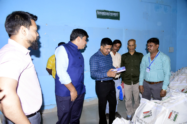 बिलासपुर 7 नवंबर 2023। जिले में 17 नवम्बर को होने वाले मतदान के लिए तैयारियां जोरो से चल रही है। इसी क्रम में कोनी स्थित शासकीय इंजीनियरिंग कॉलेज में बनाये गये स्ट्रांग रूम में आज से ईव्हीएम मशीनों को मतदान के लिए तैयार करने की प्रक्रिया शुरू हो गयी। ईव्हीएम मशीनों को मतदान के लिए तैयार करना कमीशनिंग कहलाता है। कलेक्टर एवं जिला निर्वाचन अधिकारी अवनीश शरण ने सभी विधानसभाओं के लिए निर्धारित कक्षों का निरीक्षण कर कमीशनिंग का जायजा लिया। कलेक्टर ने कमीशनिंग के कार्य में पूरी सावधानी बरतने के निर्देश दिए। कमीशनिंग की प्रक्रिया भारत निर्वाचन आयोग द्वारा जिले के लिए नियुक्त सामान्य प्रेक्षक उदयन मिश्रा एवं राजनीतिक दलों के पदाधिकारियों की मौजूदगी में हुई।
