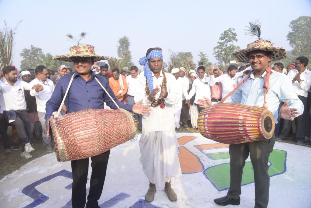 बिलासपुर 09 नवंबर 2023। शत प्रतिशत मतदान कर बिलासपुर का अभिमान बढ़ाने में हर वर्ग की प्रभावकारी सहभागिता जिले में देखी जा रही है। शहरों में नहीं अपितु सूदूर वनांचलों में भी इस कार्यक्रम में लोगों द्वारा बढ़-चढ़कर भागीदारी निभायी जा रही है। इसी क्रम में आज कोटा ब्लॉक के वनाच्छादित गांव बहेरामुड़ा में बैगा जनजाति द्वारा पारंपरिक लोकनृत्य हुड़का-हुड़की के जरिए मतदाता जागरूकता का संदेश दिया गया। मांदर की थाप पर सधे कदमों से द्वारा किए जा रहे नृत्य ने लोगों का मन मोह लिया। कार्यक्रम में कलेक्टर एवं जिला निर्वाचन अधिकारी अवनीश शरण ने स्थानीय बोली में सभी को मतदाता शपथ दिलाई। बैगा वोटरों का सम्मान किया और 17 नवंबर को सभी से मतदान करने की अपील की। कार्यक्रम में नगर निगम कमिश्नर कुणाल दुदावत, सीईओ जिला पंचायत एवं स्वीप के नोडल अधिकारी अजय अग्रवाल भी मौजूद थे।