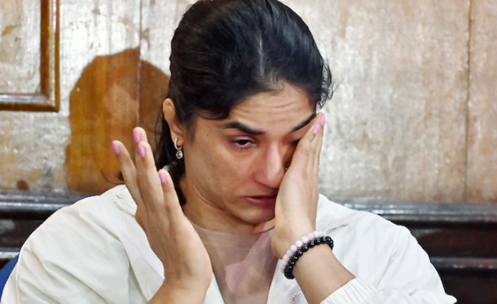 नई दिल्ली 22 दिसंबर 2023। भारतीय कुश्ती महासंघ (डब्ल्यूएफआई) के अध्यक्ष पद के चुनाव में बृजभूषण शरण सिंह के विश्वासपात्र संजय सिंह की जीत के बाद विरोध-प्रदर्शन करने वाले पहलवानों में शामिल विनेश फोगाट कैमरे के सामने ही रो पड़ीं. विनेश फोगाट उन पहलवानों में से एक हैं, जो यौन उत्पीड़न के आरोपों को लेकर कुश्ती फेरेशन के पूर्व प्रमुख बृजभूषण शरण सिंह के खिलाफ लंबे समय से विरोध-प्रदर्शन कर रहे थे. विनेश फोगाट संजय सिंह की जीत पर विरोध जताते हुए कैमरे के सामने रो पड़ीं, जब कि साक्षी मलिक ने अपने कुश्ती के जूते टेबल पर रखकर संन्यास लेने का ऐलान कर दिया।