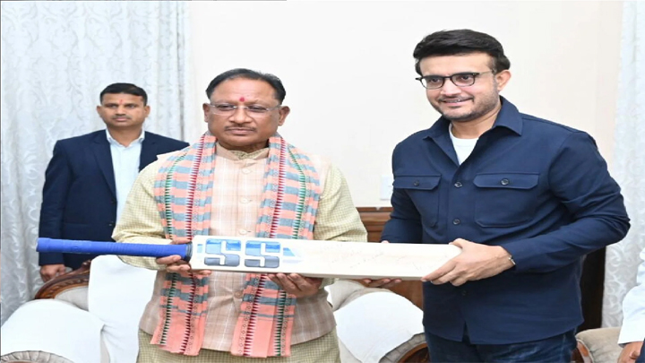 रायपुर 03 जनवरी 2024। भारतीय क्रिकेट टीम के पूर्व कप्तान और बीसीसीआई के पूर्व अध्यक्ष सौरव गांगुली ने छत्तीसगढ़ प्रवास के दौरान आज बुधवार को सीएम विष्णुदेव साय से मुलाकात की। इस दौरान उन्होंने सीएम को हस्ताक्षरित बल्ला भेंट किया। वहीं मुख्यमंत्री ने उन्हें राजकीय गमछा और प्रदेश का राजकीय पशु बेल मेटल से बने वनभैंसे की मूर्ति भेंट की। गांगुली ने मुख्यमंत्री को नववर्ष की बधाई और शुभकामनाएं दीं। वहीं मुख्यमंत्री ने भी उन्हें बधाई दी। इस दौरान क्रिकेट, छत्तीसगढ़ और विभिन्न विषयों पर चर्चा हुई। इस दौरान गांगुली ने सीएम से पूछा कि क्या पीएम मोदी ने बाघ के साथ फोटोग्राफ यहीं लिया था? क्या कान्हा छत्तीसगढ़ में है? इस पर मुख्यमंत्री ने कहा कि कान्हा हमारे पड़ोसी राज्य मध्य प्रदेश में है। रायपुर में जंगल सफारी है। यहीं पर प्रधानमंत्री मोदी ने बाघ के साथ फोटो ली थी।