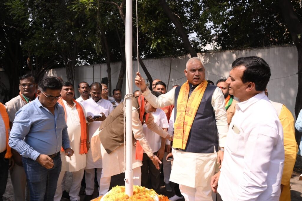 रायपुर 06 अप्रैल 2024। भारतीय जनता पार्टी के स्थापना दिवस पर मुख्यमंत्री विष्णुदेव साय ने पार्टी के करोड़ों कार्यकर्ताओं को अपनी बधाई एवं शुभकामनाएं प्रेषित की है। अपने शुभकामना संदेश में उन्होंने कहा कि – “आप सभी को मेरा नमस्कार! विश्व के सबसे बड़े लोकतंत्र में विश्व के सबसे बड़े राजनैतिक दल भारतीय जनता पार्टी का आज स्थापना दिवस है। इस अवसर पर आप सभी को हार्दिक शुभकामनाएं, बधाई। भाजपा के संस्थापक अध्यक्ष और छत्तीसगढ़ राज्य निर्माता अटल जी की भविष्यवाणी सच साबित हुई है। अब सारे देश में अंधेरा छंटा है, सूरज निकला है, कमल खिला है। यशस्वी प्रधानमंत्री श्री नरेन्द्र मोदी जी के नेतृत्व में भारत आज पुनः विश्व गुरु बनने की ओर अग्रसर है। समूचे विश्व में आज भारत की पहचान एक सशक्त देश के रूप में हो रही है। राष्ट्रवाद के संकल्प को समर्पित मां भारती को वैभव के शिखर पर फिर से आरूढ़ करने के यज्ञ में लगे सभी भाजपा कार्यकर्ताओं को साधुवाद।