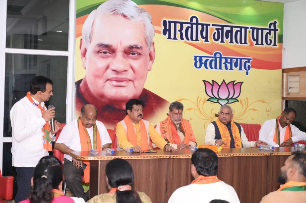 आज भारतीय जनता पार्टी की स्थापना दिवस के शुभ अवसर पर भाजपा जिला कार्यालय एकात्म परिसर में आयोजित स्थापना दिवस कार्यक्रम में भाजपा के राष्ट्रीय सह संगठन महामंत्री आदरणीय शिव प्रकाश जी, भाजपा के प्रदेश के अध्यक्ष किरण सिंहदेव जी ,प्रदेश संगठन महामंत्री पवन साय जी, प्रदेश महामंत्री संजय श्रीवास्तव जी विधायक पुरंदर मिश्रा जी ,जिला अध्यक्ष जयंती पटेल जी सहित वरिष्ठ कार्यकर्ता गण शामिल हुए।