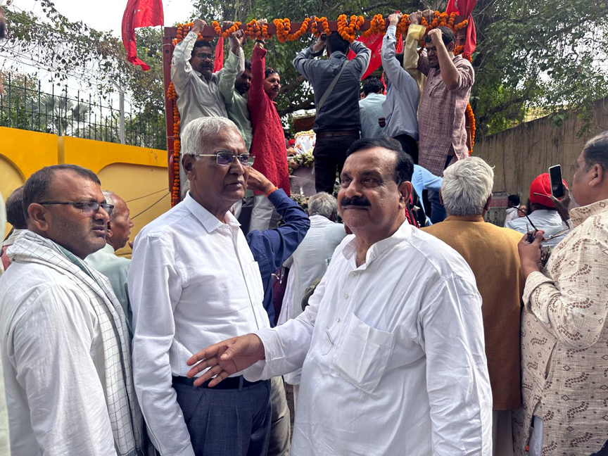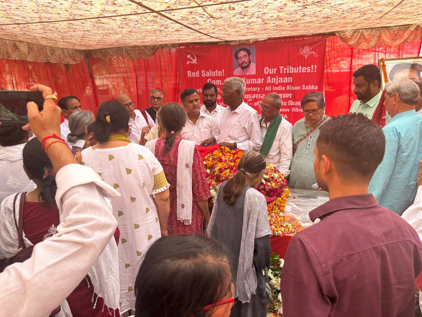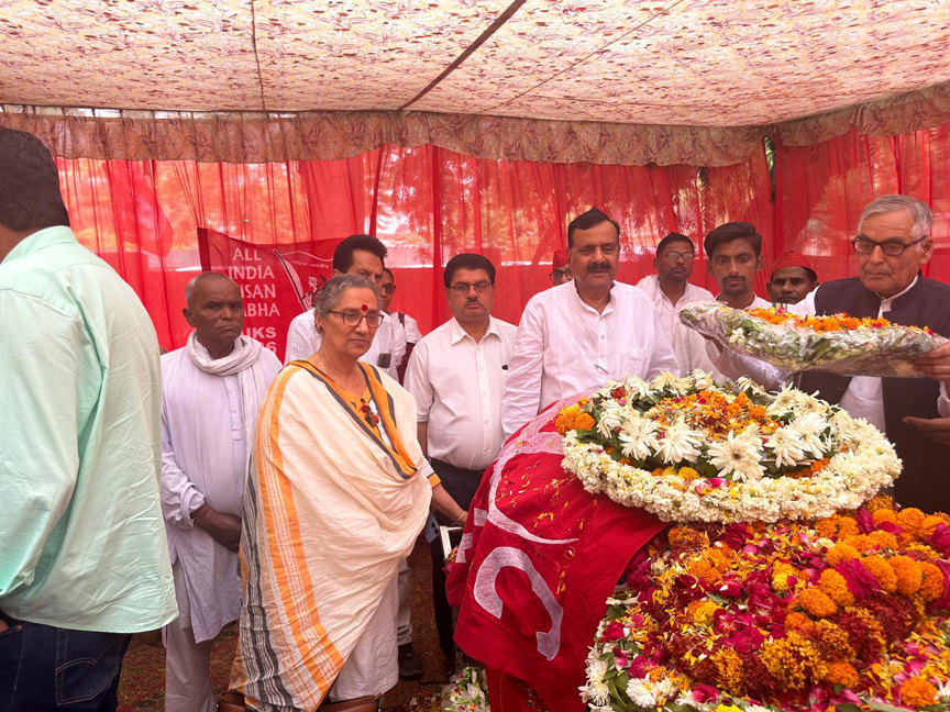 लखनऊ 05 मई 2024। उत्तर प्रदेश भारतीय कम्युनिस्ट पार्टी के राज्य कार्यालय कैसरबाग लखनऊ में भारतीय कम्युनिस्ट पार्टी के राष्ट्रीय सचिव कामरेड अतुल कुमार अंजान के पार्थिव शरीर को जन दर्शन के लिए सुबह 11 बजे से रखा गया था कॉमरेड अतुल कुमार अनजान को श्रद्धांजलि देने के लिए सभी राजनीतिक दलों के हज़ारों लोग आये थे प्रमुख लोगों में CPI के राष्ट्रीय महासचिव कॉमरेड डी राजा एटक के राष्ट्रीय महासचिव कामरेड अमरजीत कौर और पार्टी के सचिव मंडल के सदस्य कामरेड पल्लव सेन गुप्ता कामरेड रामकृष्ण पंडा थोड़ी दूर पर खड़े ट्रक पर पार्थिव शरीर को ट्रक में रखने के दरम्यान भारतीय कम्युनिस्ट पार्टी के राष्ट्रीय महासचिव कॉमरेड डी राजा एटक राष्ट्रीय महासचिव कॉमरेड अमरजीत पार्टी के राष्ट्रीय सचिव मंडल के सदस्य कामरेड पल्लव सेन गुप्ता कामरेड रामकृष्ण पंडा भारतीय महिला फेडरेशन के राष्ट्रीय महासचिव कामरेड ऐनी राजा भारतीय कम्युनिस्ट पार्टी के राष्ट्रीय कार्यकारिणी के सदस्य कामरेड पी संतोष कामरेड डा गिरीश पार्टी के राष्ट्रीय परिषद के सदस्य एवं एटक के राष्ट्रीय उपाध्यक्ष कामरेड हरिद्वार सिंह कामरेड अरबिन्द स्वरूप राज्य सचिव उ प्र कामरेड महेन्द्र पाठक राज्य सचिव झारखंड कामरेड के डी सिंह पूर्व पार्टी सचिव झारखंड कामरेड दरियाव सिंह राज्य सचिव हरियाणा कामरेड श्याम बिहारी बनाफर पूर्व छात्र नेता छत्तीसगढ़ ने कंधा देकर शव यात्रा में शामिल होकर कुछ दुर तक चले समाजवादी पार्टी ,कांग्रेस पार्टी ,फार्वर्ड पार्टी के दर्जनों नेता कई पूर्व आई ए एस आई पी एस प्रोफ़ेसर पत्रकार वकील शिक्षाविद हर वर्ग के लोग मौजूद थे कामरेड अतुल कुमार अंजान की पत्नी कामरेड भारती बहन कामरेड कीरन सिंह कामरेड रत्ना सिंह एवं सभी रिश्तेदार मौजूद थे।