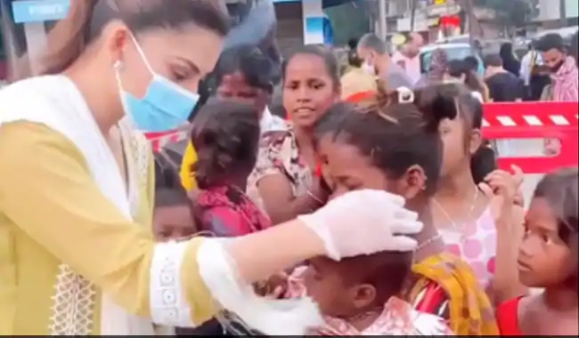 बॉलीवुड एक्ट्रेस उर्वशी रौतेला अपने स्टाइलिंग सेंस और डांस मूव्स की वजह से फैंस के दिलों में अपनी एक खास जगह बनाई है। इन दिनों उर्वशी सोशल मीडिया पर काफी एक्टिव रहती हैं और अकसर वह अपन फोटो, वीडियो और लाइफस्टाइल से जुड़ी जानकारी अपने फैंस के साथ शेयर करती रहती हैं। हाल ही में उर्वशी ने एक वीडियो शेयर किया है जिसमें वह बच्चियों और छोटे बच्चों के बीच खाने का पैकेट बांटते हुए नजर आ रही हैं। उर्वशी का यह वीडियो सोशल मीडिया पर काफी तेजी से वायरल हो रहा है और फैंस इसे काफी पसंद कर रहे हैं और अपना रिएक्शन भी दे रहे हैं।