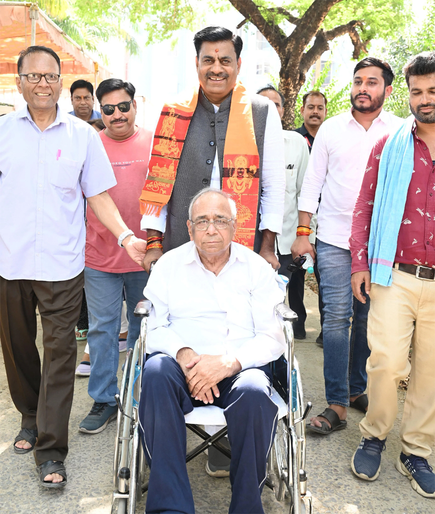 भोपाल मेंबुजुर्ग मतदाता को व्हील चेयर पर मतदान केंद्र ले जाते दिखे विधायक रामेश्वर शर्मा। 80 वर्षीय सुरेश सक्सेना ने बूथ नंबर 246 पर अपना मतदान किया। वहीं, महापौर मालती राय ने वार्ड 36 बूथ क्रमांक 185 पुष्पा नागर में मतदान किया।
